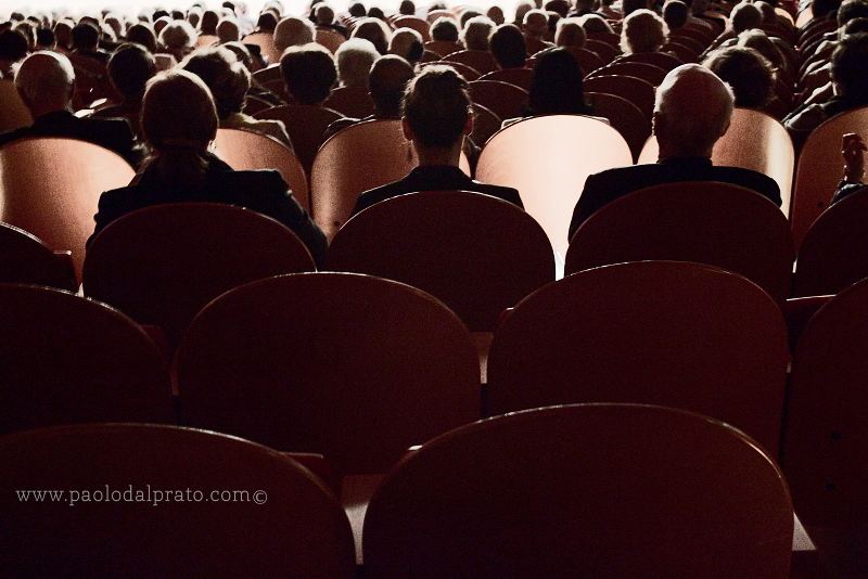 Mi piace moltissimo la luce che digrada dal massimo (alto-sinistra) al minimo (basso e destra) e che mette in rilievo la parte alta delle teste degli spettatori (come a voler dire che per ascoltare bisogna usare non solo la testa, ma la testa della testa