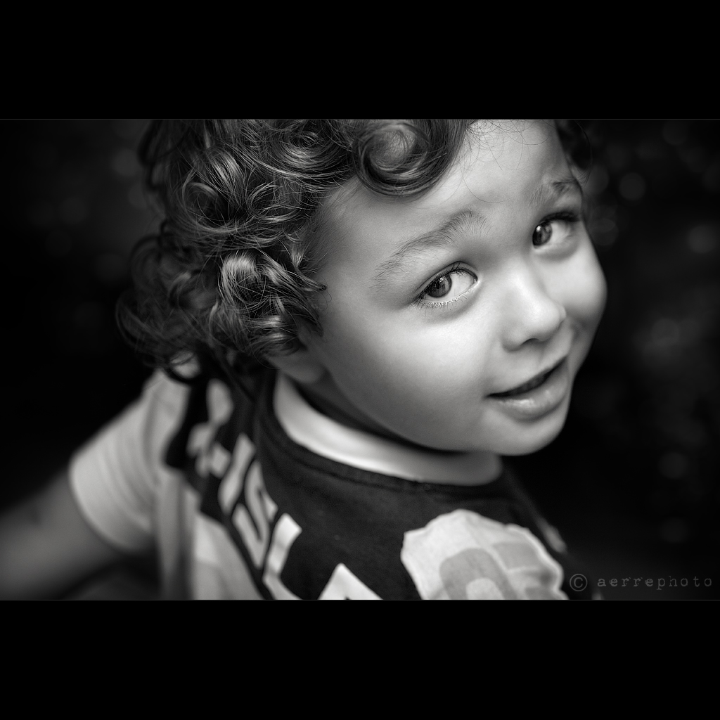 Mi ammalia tutto: la luce che illumina quei riccioli, il nasino e l'occhio con quelle sopracciglia tanto simili alle tue, il taglio dell'immagine e l'espressione così propria dei bimbi e così coinvolgente.