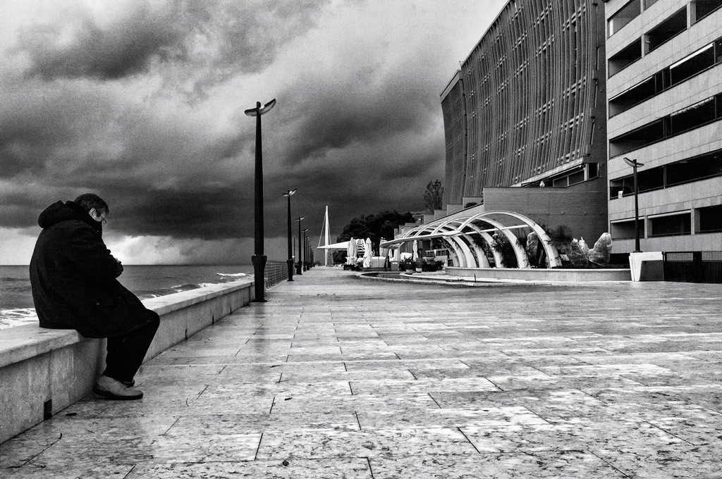 Ottimo il bn di questo bello e malinconico"mare d'inverno".Mi piace anche la composizione,forse se fosse stato possibile allargare appena un poco a sinistra per dare più aria alle spalle dell'uomo e far coincidere l'angolo in basso con la base del muretto.Complimenti!  _________________ Sergio Demitri https://www.flickr.com/photos/124946035@N02/ |