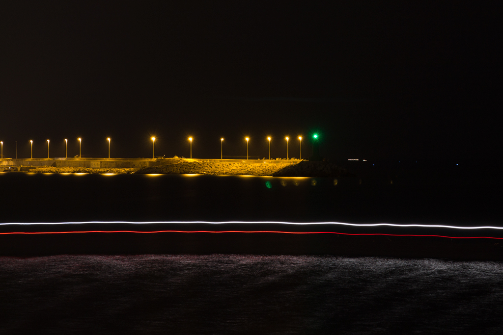 Grazie dei passaggi, allora la scia è stata provocata dalle luci di un peschereccio, la parte sotto mi sembra interessante in quanto e il mare che è stato illuminato dalla luce bianca, mentre per quanto riguarda le lucette a destra in effetti sono da togliere.