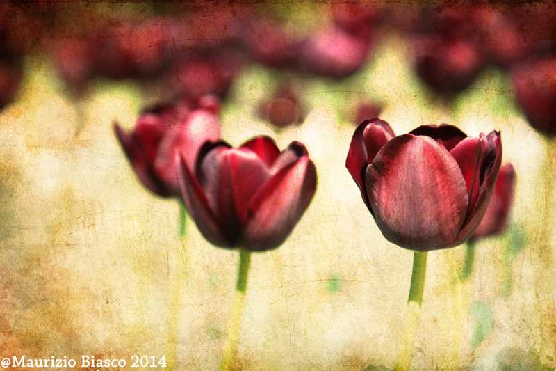 se posso fare un appunto, quello che mi fa un po storcere il naso sono i gambi dei 4 tulipani in primo piano che passano dal verde al giallo in maniera troppo netta, sembra che sia stati recisi e "applicati" dopo