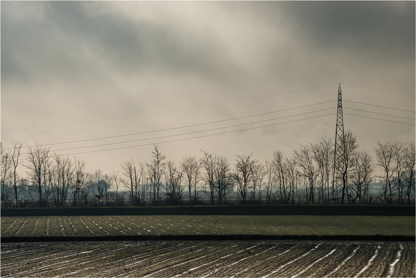 Luce non luce, ma chiarore diffuso, necessario e sufficiente, per esaltare al massimo la bellissime geometrie che componi: di fili, di alberi e di terra.