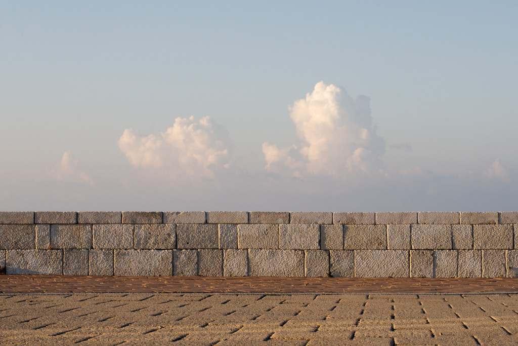 Bella ed essenziale. Le nuvole appena accennate e la tonalità lieve del cielo aggiungono un'astrazione che si contrappone piacevolmente alla matericità del selciato e del muretto ben evidenziata grazie alle condizioni di luce. Insomma come stare con i piedi per terra e la testa fra le nuvole.