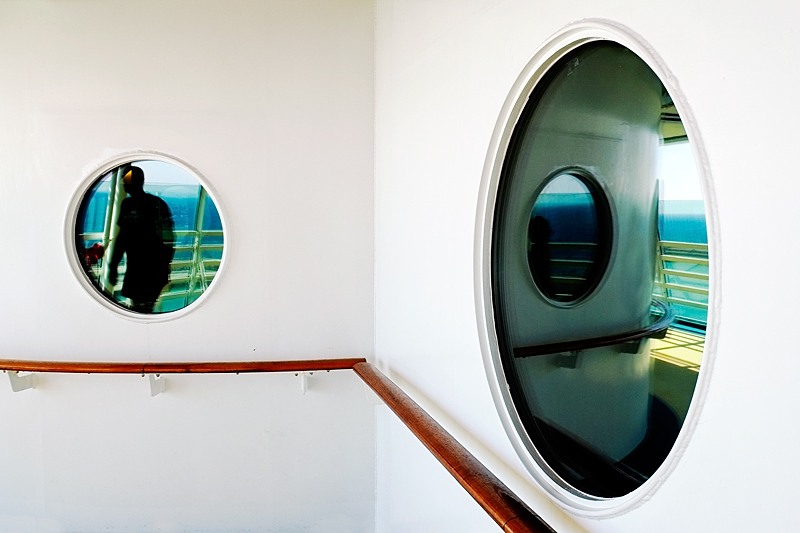 Se hai margine prova a schiarire un poco l'oblò di destra per rendere ancora più visibile la figura inscritta, altrimenti scuriscila del tutto.