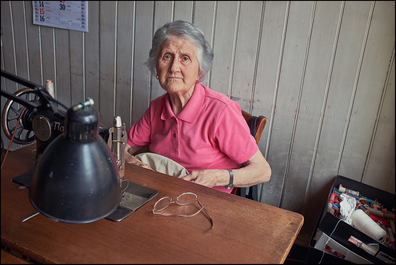 Mi ritrovo perfettamente nel commento e apprezzamento di Francesco. Mi spiace per la lampada...perchè quella splendida macchina da cucire meritava un risalto maggiore. Bello il contesto, essenziale, anonimo...qualche scatola con le spolette, un calendario e un paio di occhiali. Il racconto di questa donna del suo modo di essere e d'intendere il lavoro c'è tutto. Complimenti Nicola.