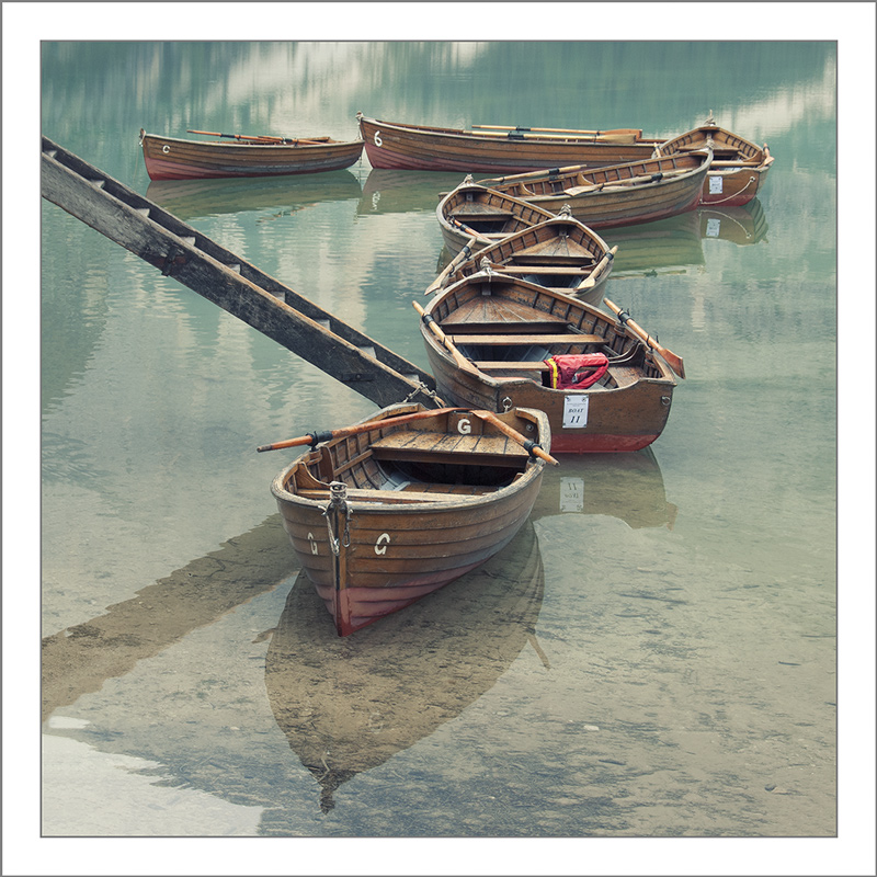 E' uno scatto del 2011 con le barche usate nel Campionato del Mondo di Pesca alla mosca sul Lago di Braies (Val Pusteria, Alto Adige).