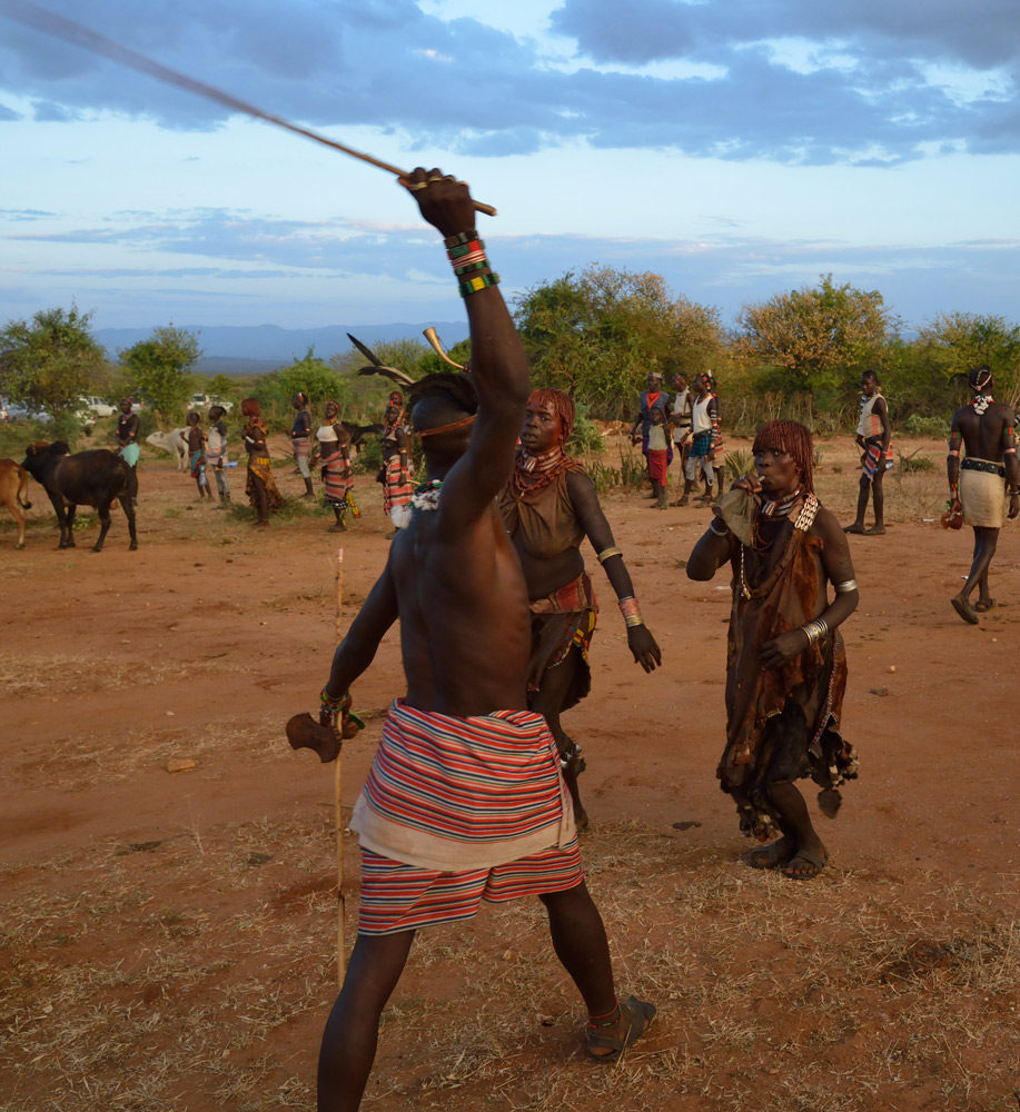 | Le donne della famiglia del ragazzo che eseguirà il salto si fanno frustare per dimostrare l'attaccamento alla famiglia |