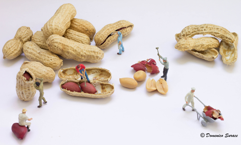 Ciao, questa la trovo davvero molto carina..., gli uomini sembrano davvero interagire con le arachidi, chi si riposa...chi porta via le pelli rosse, chi apre e chi martella...., mi piace davvero, complimenti..., con questi piccoli soggetti puoi inventarti e costruire quello che vuoi, da scenette verosimili a paradossali..., buon divertimento!