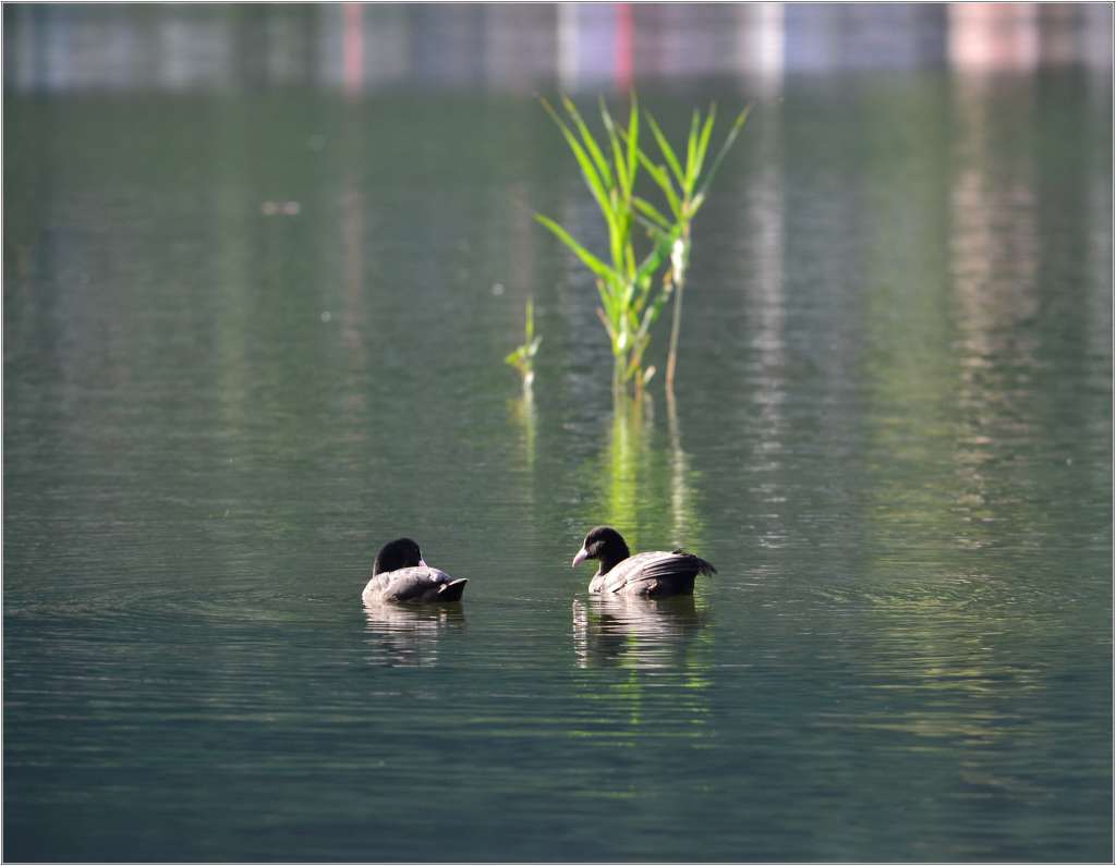 Diciamo che la folaga di per se è uno dei soggetti più difficili da rappresentare, il suo naso e becco chiarissimi mal si conciliano a livello di esposizione con il nero lucido corpo. In questo tuo scatto la parte del corpo pur essendo nera a fatto si che la sua lucentezza abbia provocato una bruciatura ed il collo dello stesso colore apparire nero illeggibile. Diciamo che ti sei confrontato con dei soggetti difficili e no ne sei venuto fuori bene, anche la distanza era notevole.