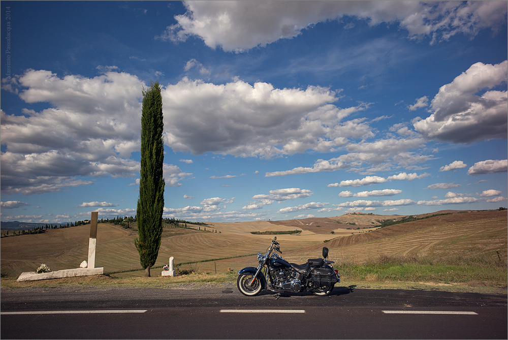 | Un classico del paesaggio Toscano eseguito assecondando i canoni classici della composizione la moto come elemento complementare è oggetto che ci regala il senso di libertà nel viaggio....voto come ottima... mi rende un poco stupito la mancanza di commenti.....ciao Gianni. |