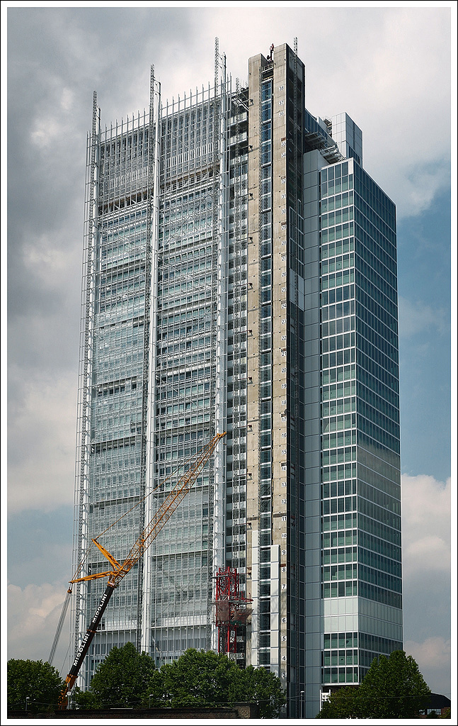 trovo l'impatto molto bello, a dispetto delle linee che mi disturbano marginalmente, più per l'assimmetria che per la convergenza (la pendenza è maggiore a sinistra e più lieve a destra). ottima anche la nitidezza, a proposito della quale avrei evitato di intervenire sulle chiome degli alberi, dove la mdc pronunciata risalta in maniera per me fastidiosa. Per quanto riguarda la versione corretta, si perde un po' di dinamismo dell'immagine, ma soprattutto si percepisce la struttura come "tozza" perchè a giudicare dalle altezze delle finestre, e prendo come riferimento quelle ai piani bassi, hai stirato l'immagine per raddrizzarla ma non l'hai poi allungata per recuperare la giusta proporzione tra larghezza e altezza.