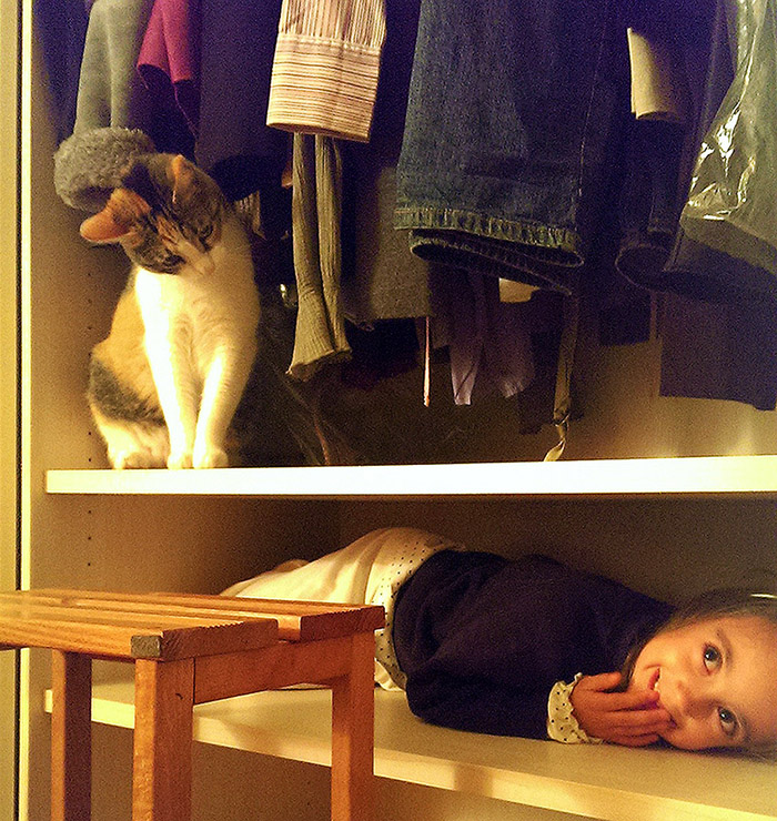 Simpaticissima immagine,molto belle le espressioni della bambina e del micio che si osservano a vicenda.Peccato non avere avuta una fotocamera prestante sottomano ma hai fatto bene a scattare comunque,questa è una foto che avrà un lungo futuro anche come ricordo personale!Complimenti e saluti,Sergio.  |