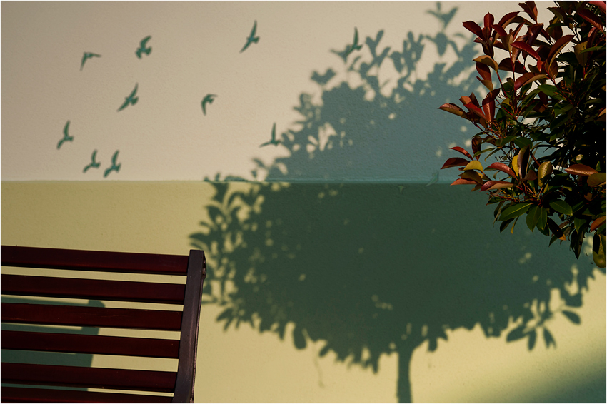 Immagine doppiamente bella: per il gioco di ombre ed elementi reali così ben distribuiti ed equilibrati nella forma e nei colori, e per il messaggio poetico e lievemente struggente che trasmette…