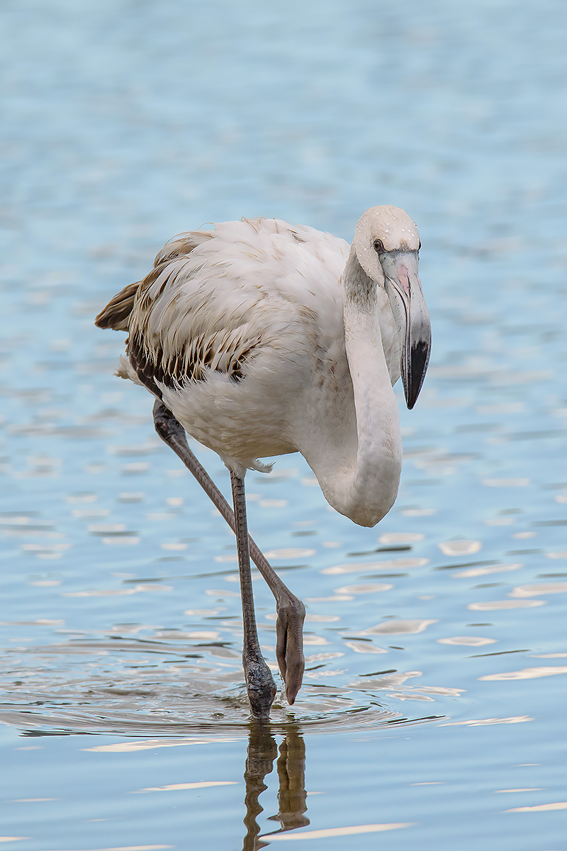 Bello quell'azzurro delicato su cui si staglia il fenicottero ripreso egregiamente. Ciao