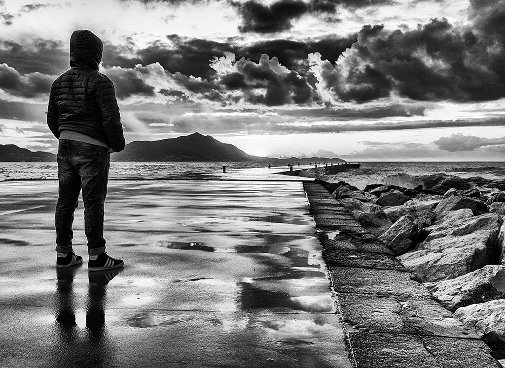 Qui in street mi è stata sovente rimproverata la ripresa di spalle; ma qui la credo funzionale ad indirizzare lo sguardo dell'osservatore verso il paesaggio.