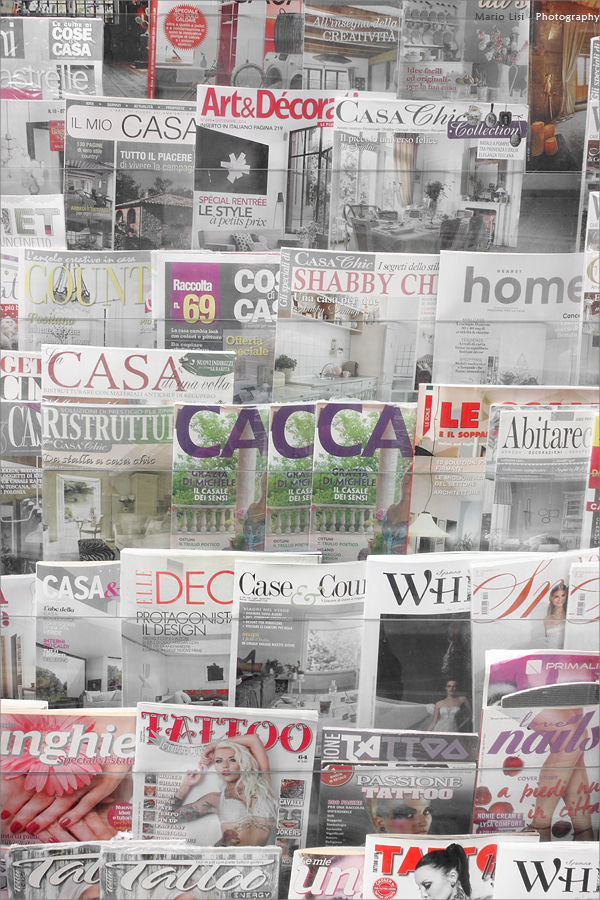 Spiazzante e ben vista. Un monito alla moderna letteratura per lo più composta da periodici spazzatura. La versione stampata dell'analoga TV che ormai si può riassumere nel messaggio composto (casualmente?) in mezzo ad un bel pattern cartaceo.