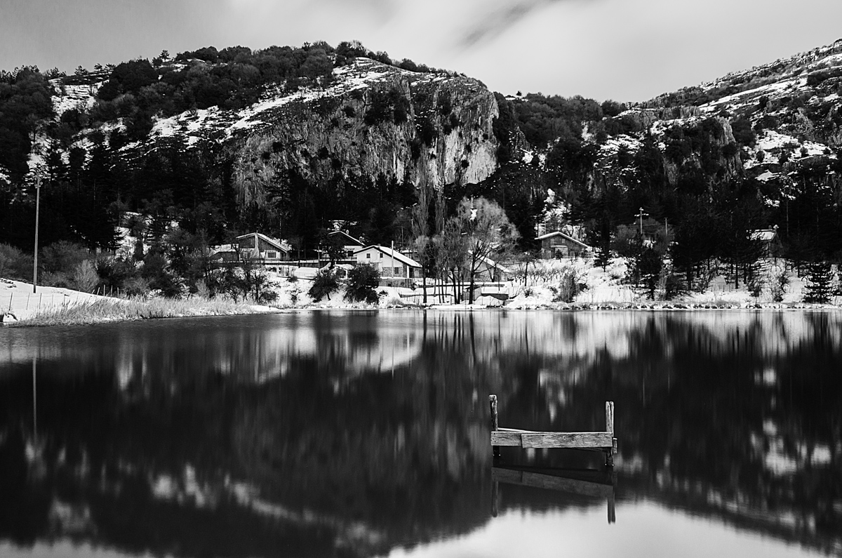 Immagine gradevole, impreziosita da un b&n molto deciso. Personalmente avrei utilizzato una focale leggermente più corta o in alternativa fatto qualche passo indietro per includere per intero i riflessi delle montagne. _________________ Riccardo Bruno |