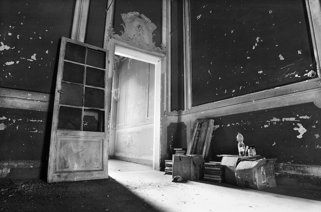 E' raro vedere una foto d'interni con una simile deformazione. Non mi convince anche se rispetto gli intenti creativi non essendo possibile che le deformazioni siano frutto di una svista. E' evidente che è voluta considerato il punto di ripresa dal basso. Bello il fascio di luce che penetra con forza all'interno della stanza. E a colori?