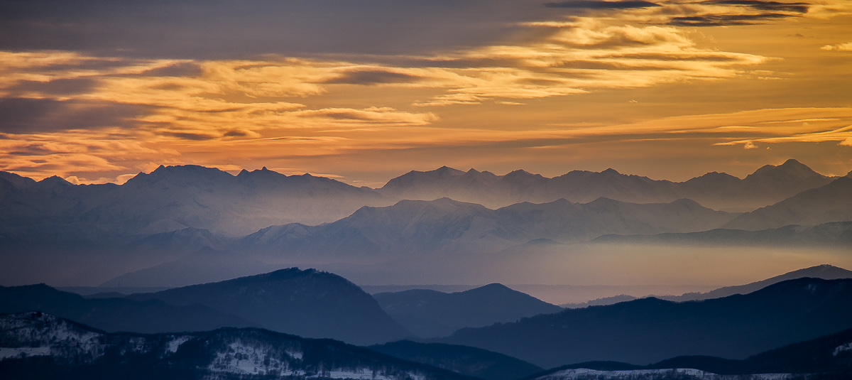 Bella l'atmosfera colta fra le cime, ideale il formato panoramico che avrei ulteriormente estremizzato tagliando la parte alta del cielo dove c'è il nuvolone scuro. Ciao _________________ Paolo |