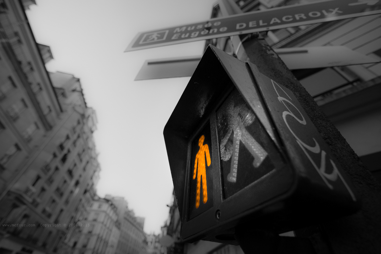 Il pallino delle desaturazioni parziali l'abbiamo avuto tutti... , in questo caso l'immagine funzionava bene anche tutta a colori, ma volevo evidenziare l'omino che dà le spalle alle indicazioni per il museo, il diaframma aperto ha fatto il resto.