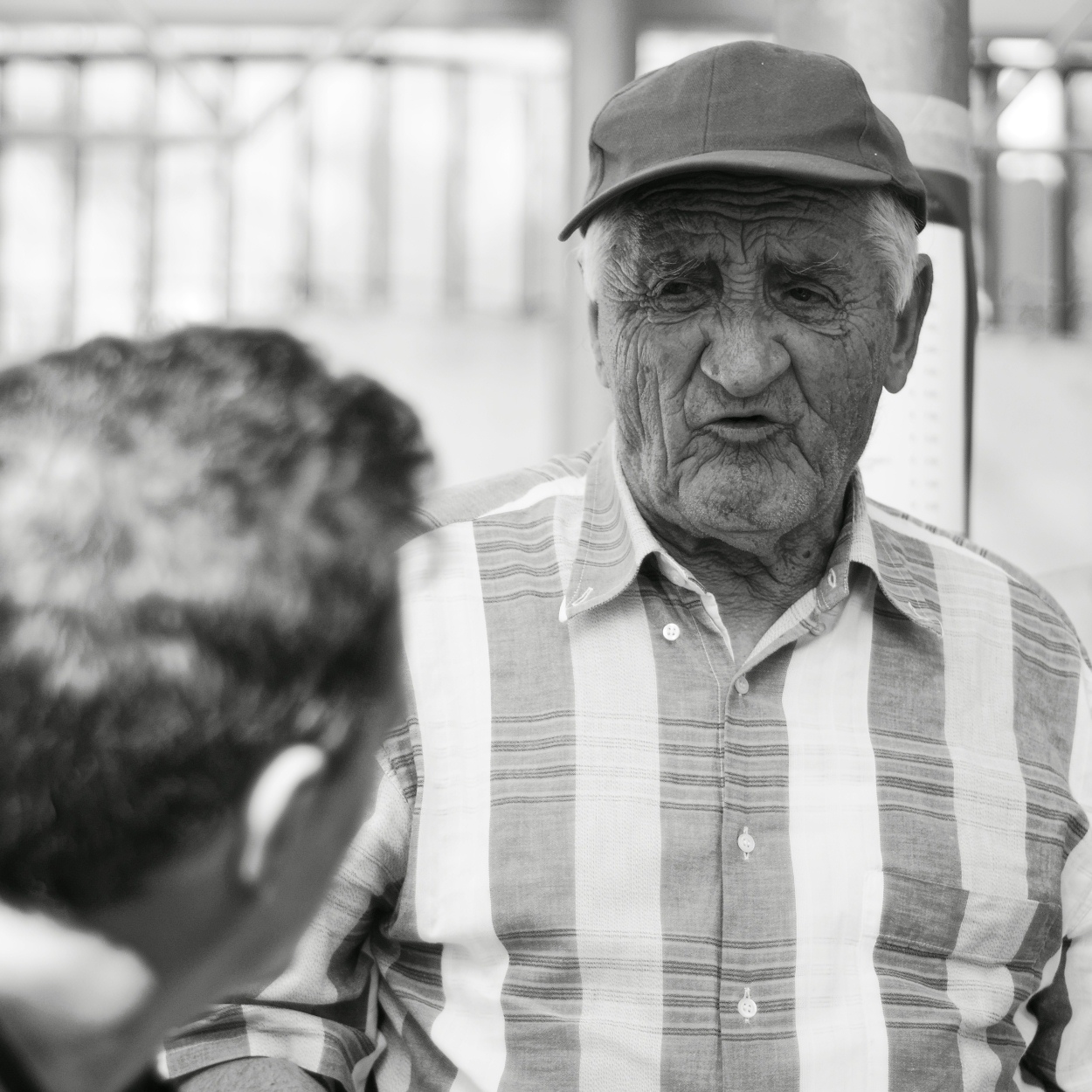 L'interlocutore si riconosce nel signore di spalle. Peccato che sembri entrare quasi per caso nell'inquadratura creando un evidente macchia di sfocato, che seppur contribuendo a raccontare una storia e a costruire il ritratto, visivamente disturba.