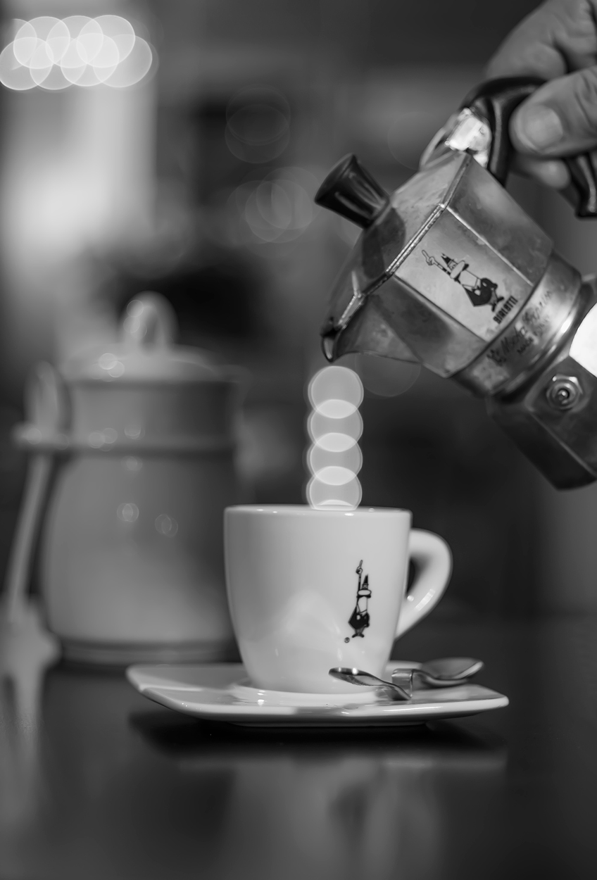 Ho cercato di ridurre gli errori che mi avete evidenziato. Intanto ho cercato di migliorare lo sfondo, poi la messa a fuoco. Ho cambiato la caffettiera col bricco del latte e ho cercato di armonizzare meglio le luci. A questo punto ho lasciato la foto a colori che mi sembra dia più armonia e calore. Grazie ancora dei commenti