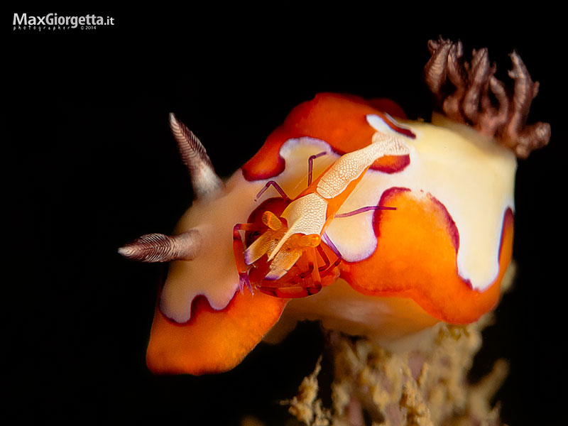 macro sub nudibranco di 2 cm con gamberetto imperiale