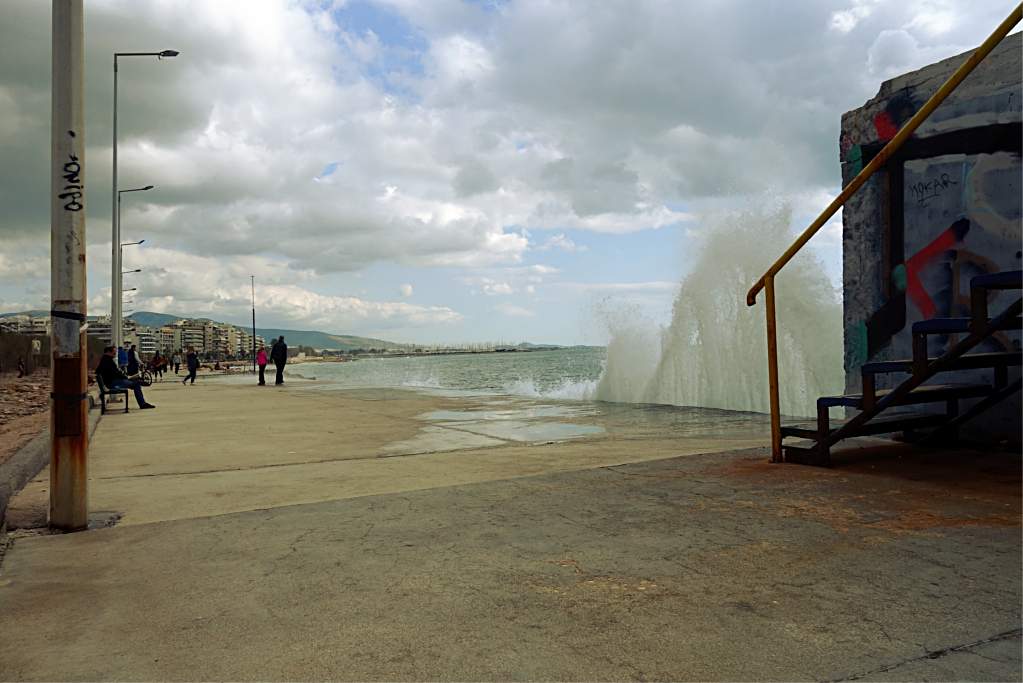 Mi piace il taglio di Vittorio buona la contrapposizione tra il muro in cemento e quello di acqua.