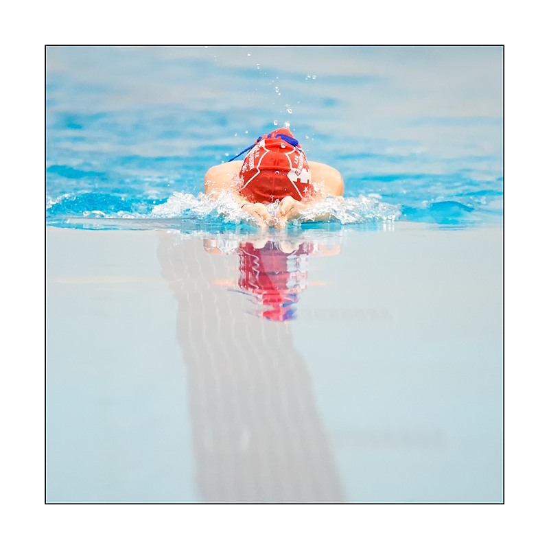 Particolare perchè ben diversa dalle solite foto frontali di una nuotata a rana che riportano quasi sempre la fase di respirazione.