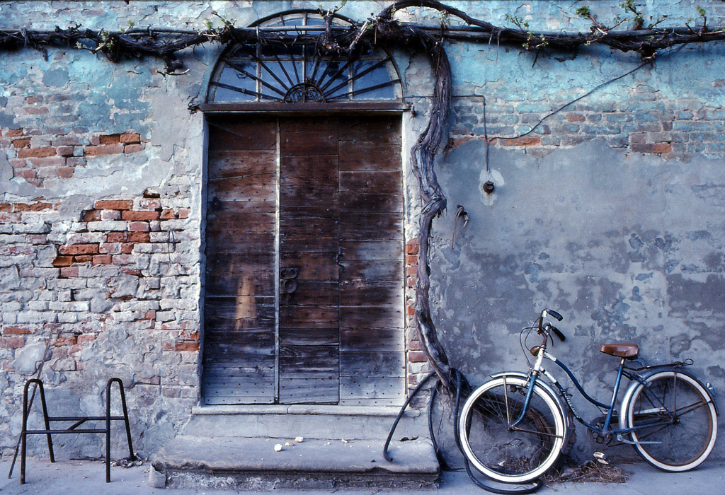 Il vecchio portono in legno lascia immaginare vecchie abitudini e antichi modi di vivere ... la bicicletta attende il suo padrone che con calma e dolcezza la userà per i suoi piccoli ma importanti spostamenti!