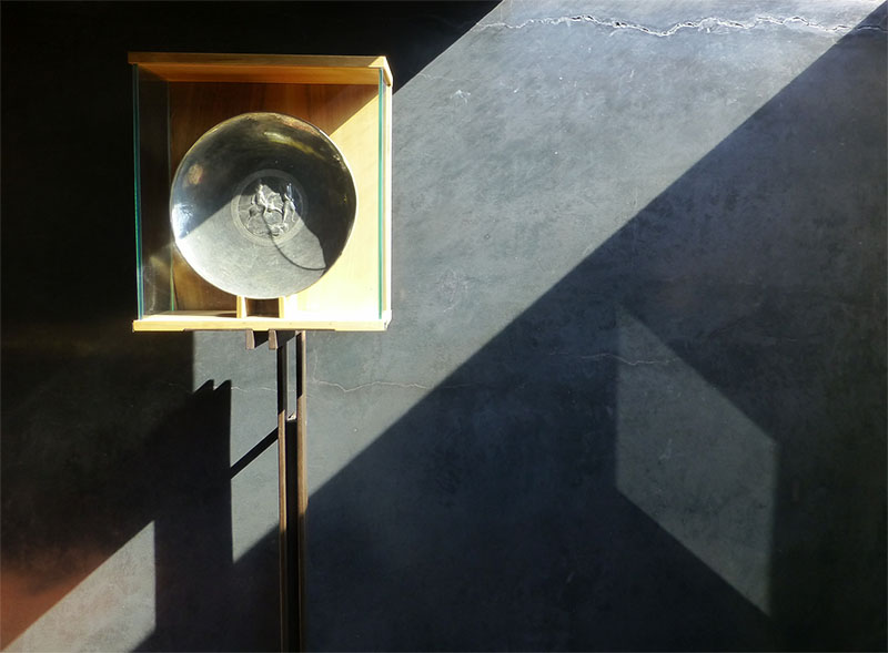 Non conosco l'opera e la sua collocazione, ma hai ben integrato la geometria delle ombre con (quella che mi pare) la teca..