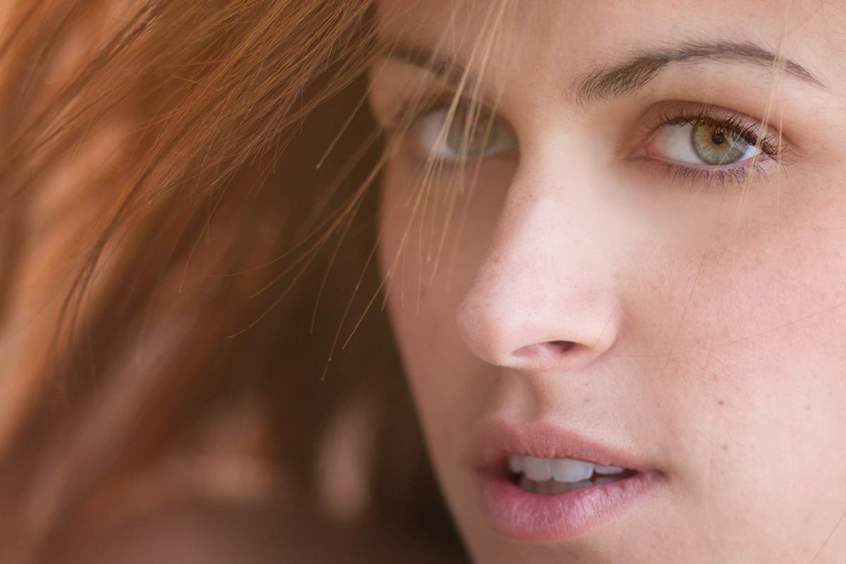 Un ritratto dolce e fresco insieme, con una bellissima resa dell'incarnato. Molto efficace la penombra che si fa strada oltre la zona di fuoco, racchiusa entro al cascata dei capelli. In casi come questo apprezzo anche la profondità di campo limitatissima , che lascia ad una sola iride come la responsabilità emotiva dello sguardo e la sua espressività. Anche se, a dir il vero, qui l'occhio in vaghezza si presenta in modo un po' particolare, come stranamente velato oltre una ciocca.