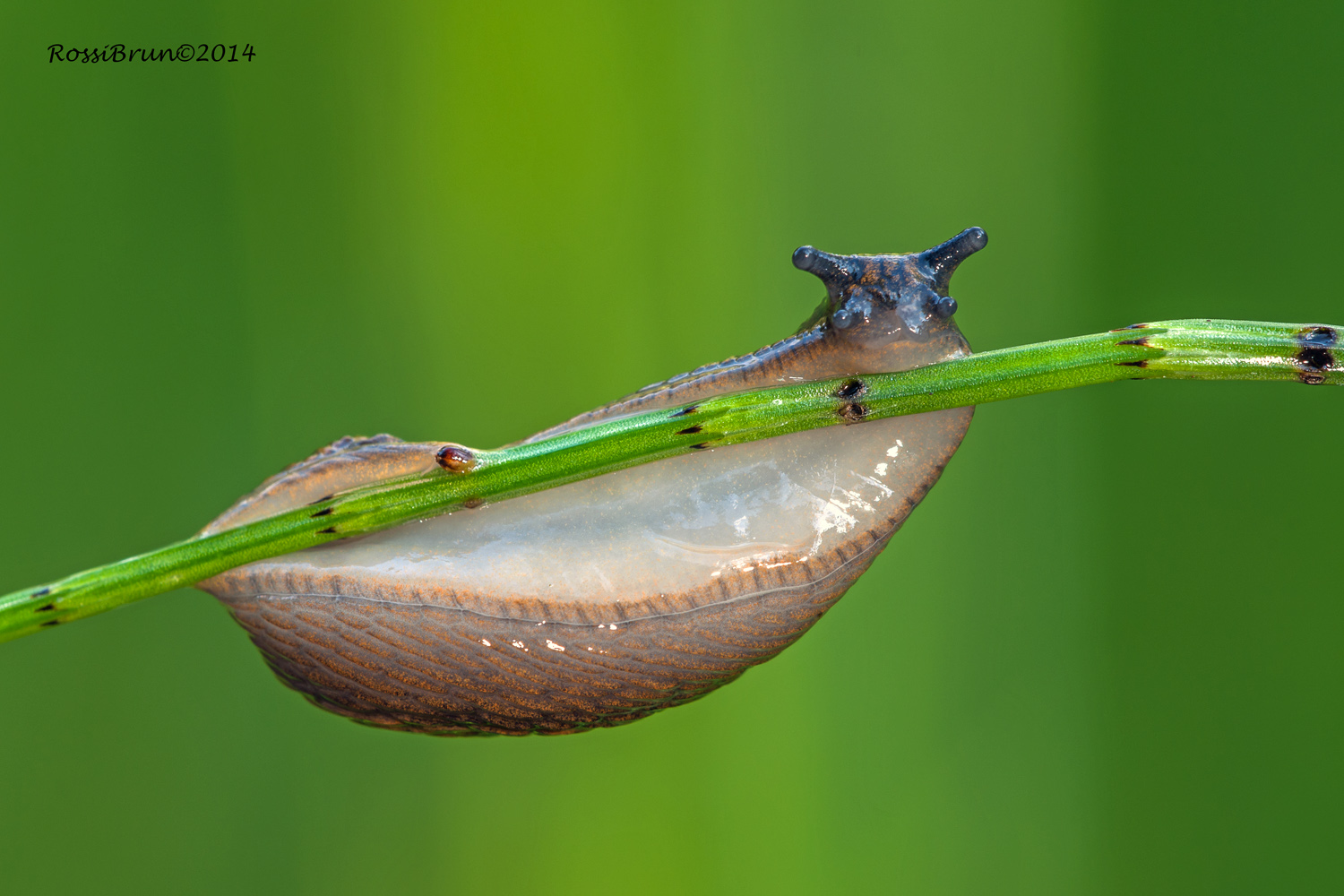 Sospesa, praticamente incollata in acrobazia lenta al verde dello stelo. In sfondo un'altro verde, morbidissimo, e dal magico punto di saturazione. Magari è un soggetto più comune di altri e non fra i più appariscenti, ma per me reso con grazia.... e simpatia direi.