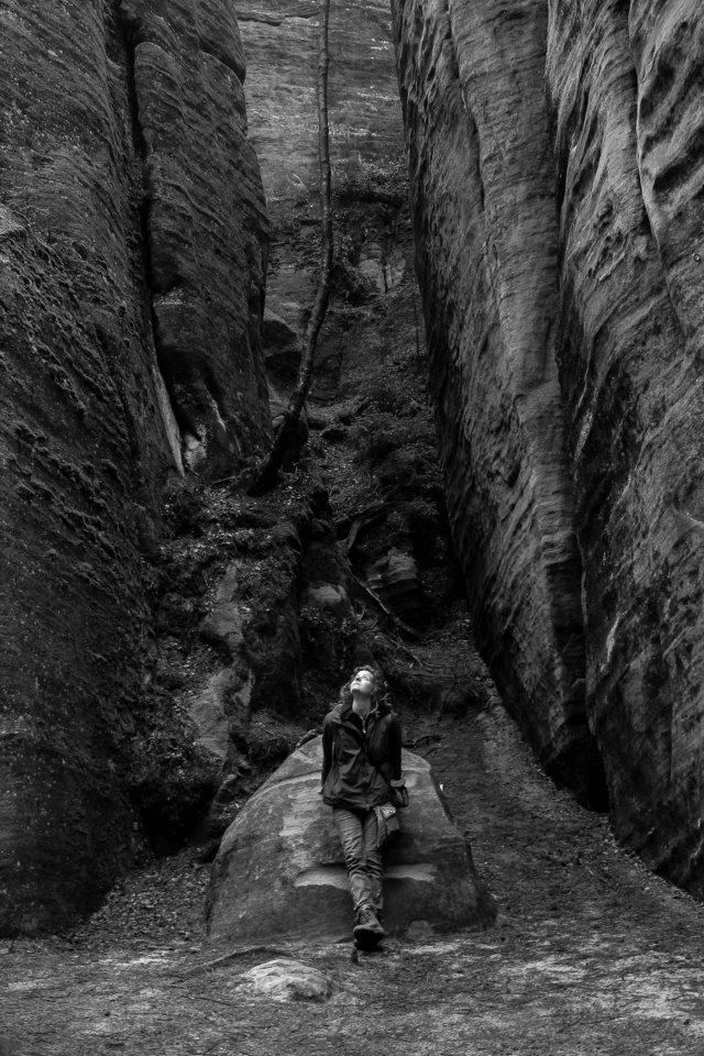 Un bel contrasto tra la natura imponente e la figura umana un po' intimorita, ma forse soprattutto incuriosita.