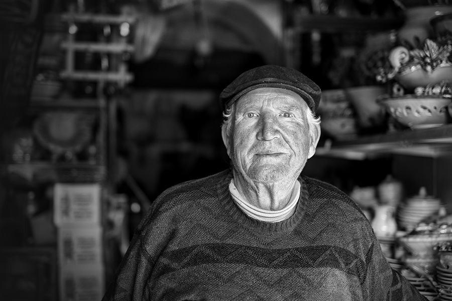 L'altro giorno mi sono recato nel centro storico di Cosenza per fare alcuni scatti. La parte vecchia della città è bellissima ma purtroppo degradata. Sul finire della mia passeggiata mi imbatto in questo negozietto storico che vende "panari" (cesti), pentole in rame, vasi in terracotta ed incuriosito entro e mi metto a parlare con il proprietario. Mi dice che l'attività è aperta dal 1960 ed è l'unica superstite di dieci simili che si trovavano sulla stessa via. Viene da una famiglia povera, 8 figli, calzoni strappati e tanta educazione e rispetto verso il prossimo. Ne scaturisce una discussione nostalgica sulla perdita di valori e delle tradizioni che affliggono i nostri giorni. Gli chiedo se posso scattargli qualche foto e lui acconsente orgoglioso.