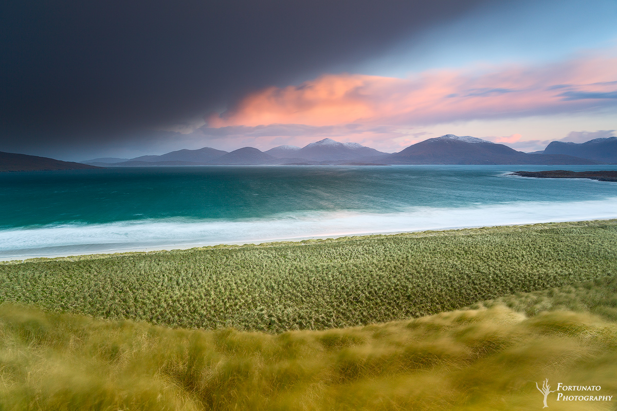 Ancora un luogo speciale, ripreso in modo speciale con la visione dell'artista, che abbina sul frame 3 fasce di tonalità cromatiche armoniche: il forte mosso dell'erba, la strana spiaggia ed il mare.