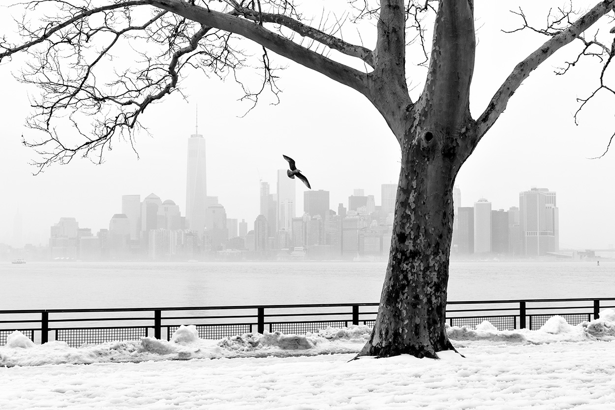 Quello che mi colpisce di piu' in assoluto e' il bn con due macrozone cosi' dinamicamente contrastanti (albero, ringhiera e volatile decisamente scuri, il resto molto chiaro).