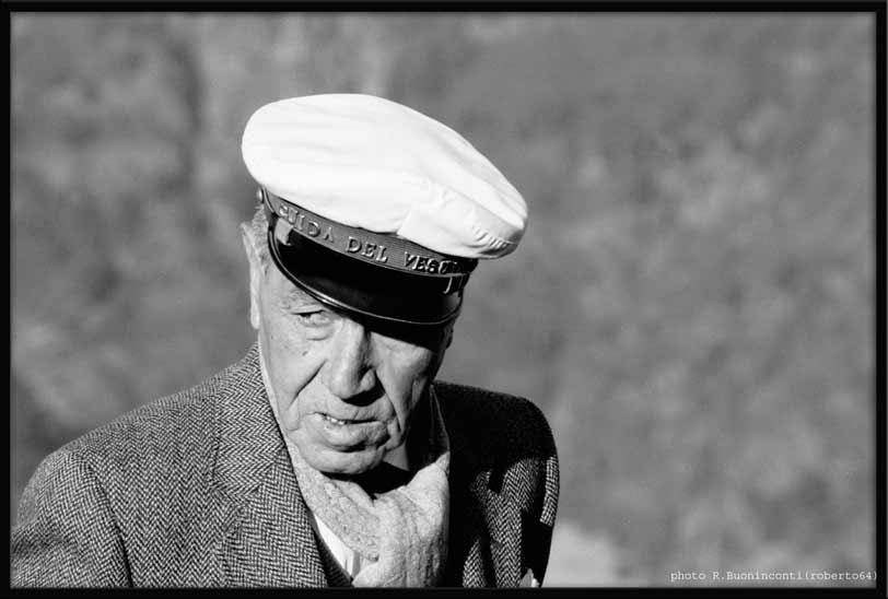 Questo signore ha più di 80 anni è sostiene di essere l'ultimo discendente di una stirpe di guide del Vesuvio, se ne sta lassù con qualsiasi tempo ad aspettare i turisti, assieme ai suoi cani.