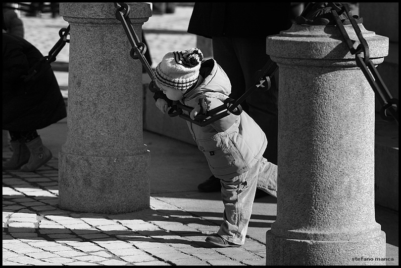 B/N ben bilanciato. Peccato che il bambino non stesse guardando in macchina.