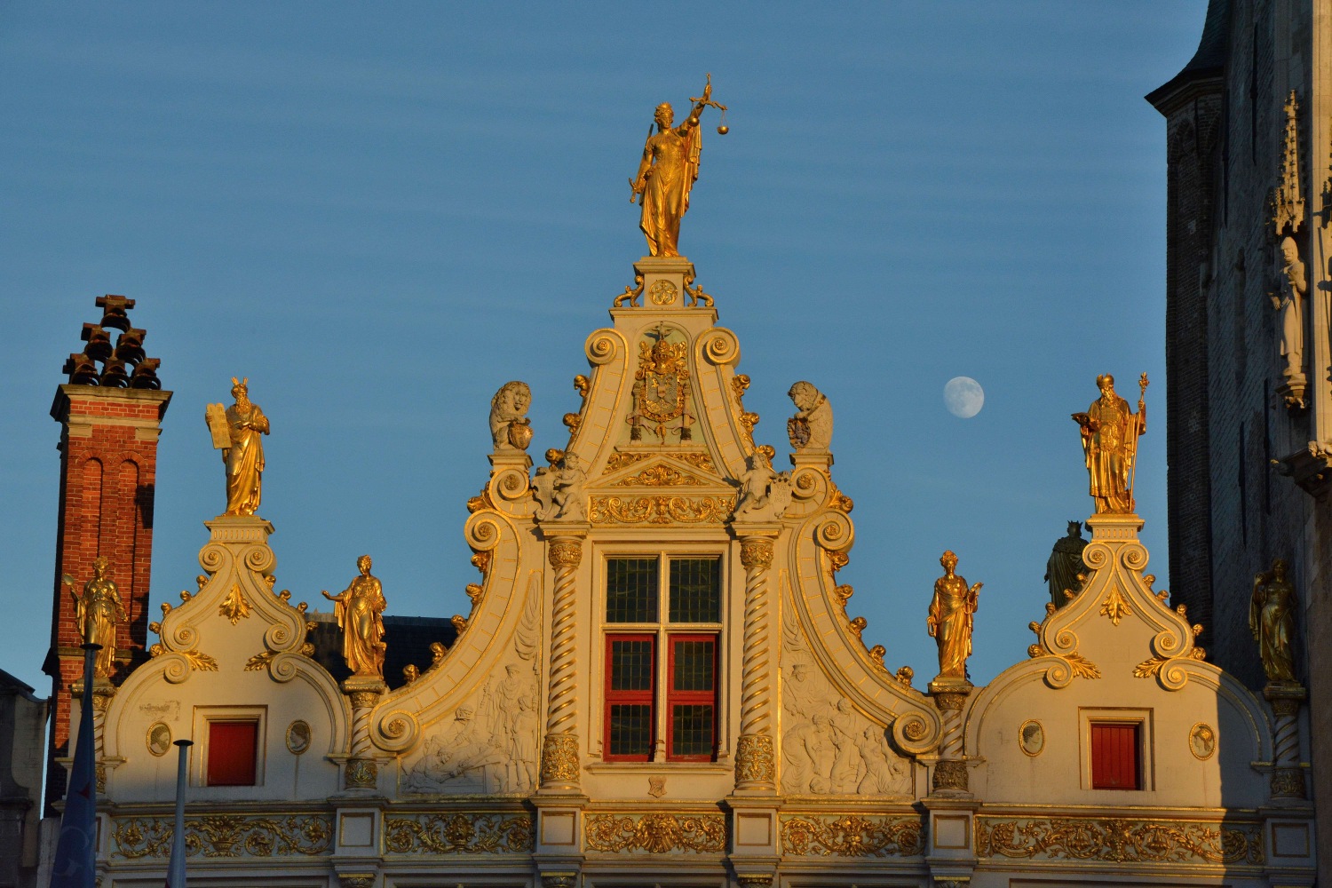 | Bruges piazza del Burg al tramonto. |
