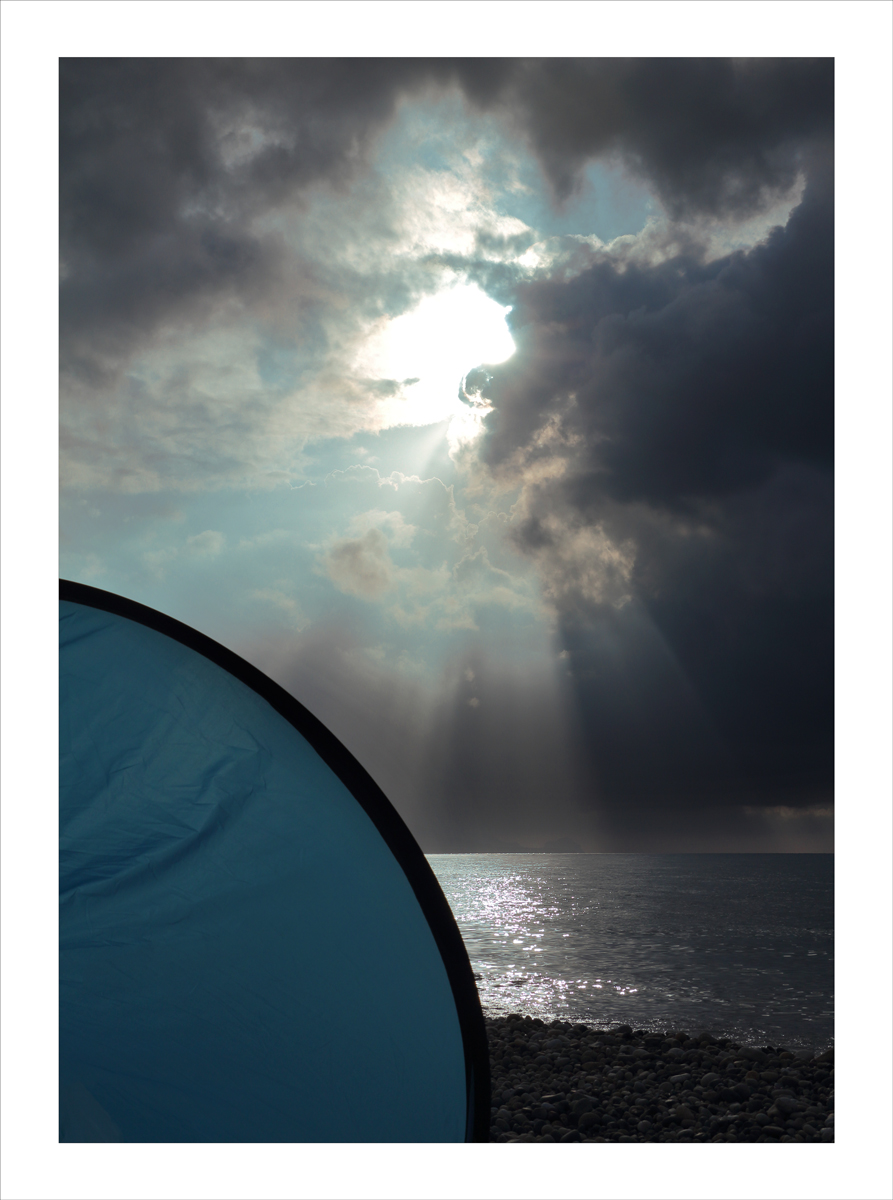 Buona l'idea di Clara, in effetti non c'è bisogno di vedere il sole, basta vedere le tonalità e l'effetto dei raggi.
