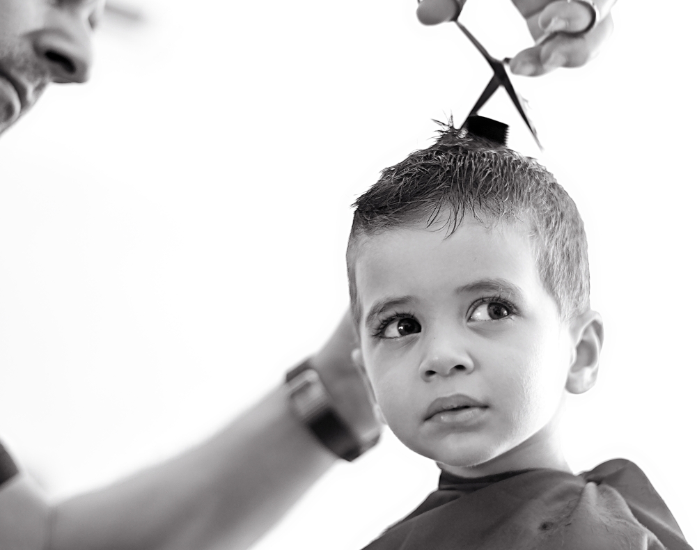 | Mio figlio al primo taglio di capelli.