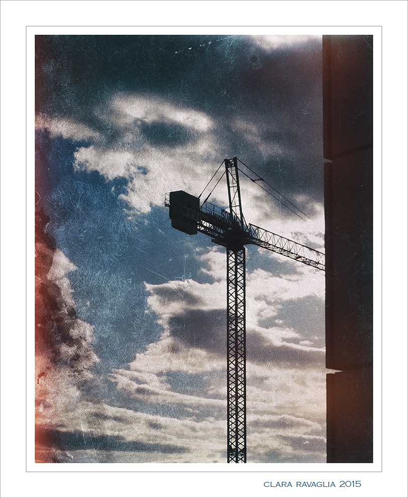 Ho usato qui piccole visioni con il naso all'insù, dove l'uso della texture è come un velo di stoffa su di un corpo nudo dalla bellezza non esemplare, un accenno di pudore, per smussare gli spigoli ; il cielo è sempre cielo lassù, eppure qua sotto siamo un po' più soli e la vita è un po' più difficile , la bellezza più nascosta.