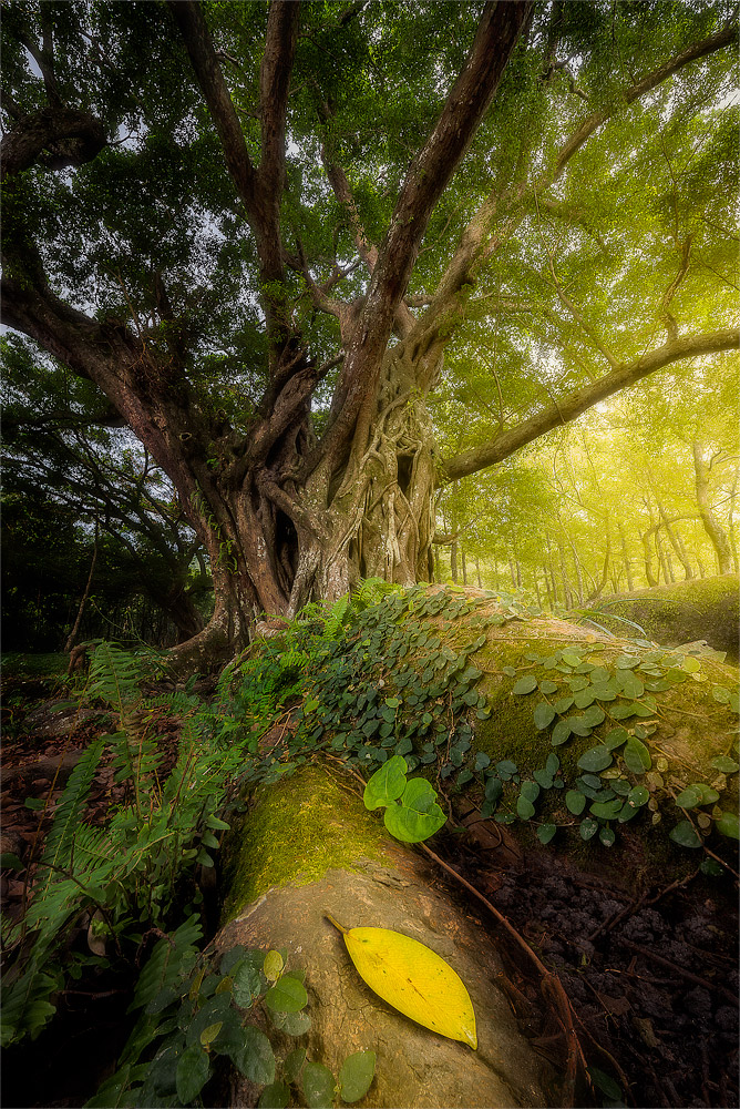 La foglia al centro urla reclamando con forza la sua parte da protagonista ... eheh, e la apertura di luce a lato ha una carica di giallo , lei pure, direi più che intensa. Ma l'effetto complessivo che hai ottenuto non è affatto spiacevole.