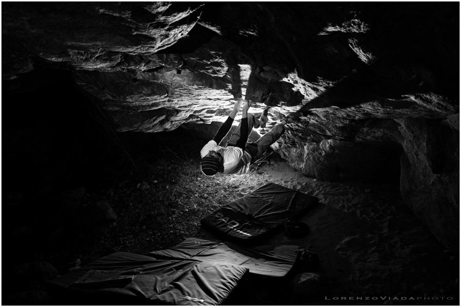 Audace il gesto atletico e dinamica la restituzione fotografica. Trasmette tuta la tensione di questo procedere in arrampicata.