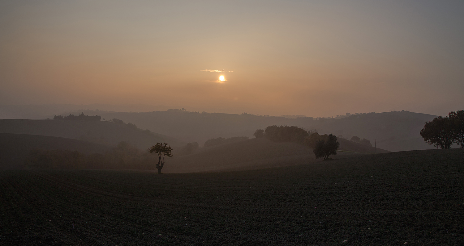 Luca, a me pare un poco sottoesposta. Pur nella situazione di luce solare al tramonto attenuata dalla velatura della nebbia, un poco di luminosità in più non guasterebbe, secondo me. Per gli ulivi son d'accordo con Paolo.
