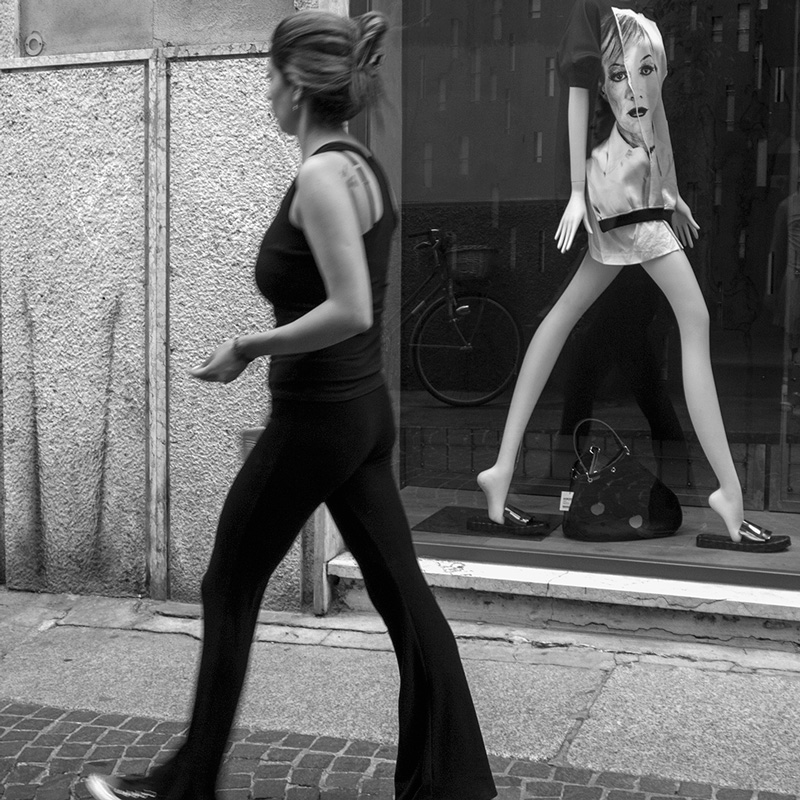 Ettore, se guardi la mia galleria ho sempre cercato di fare street rispettando regole e composizione, a volte erano giudicate troppo "perfettine" e magari insipide. In questo caso piede tagliato della ragazza/testa tagliata del manichino e spostata sulla sua maglietta mi pare si bilancino bene, visto l'ironia della situazione. Comunque le tue sono parole su cui ho molto riflettuto anch'io.