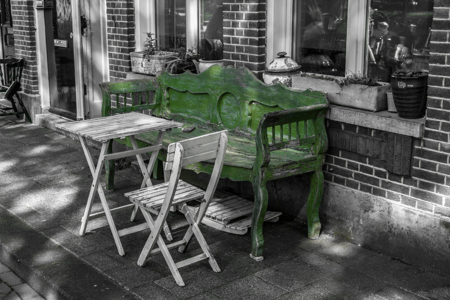 Ti ha colpito questa bella panca, vecchia, rovinata, un bel legno dipinto di verde. E hai fatto bene a volerla immortalare, ma come credo tu l'abbia già capito, tentanto di farla spiccare, che non era abbastanza valorizzata in questa fotografia: la quale risulta poco interessante per via del punto di ripresa più alto e della centralità del soggetto. Un differente punto di ripresa avrebbe agevolato, tipo esattamente davanti e alla sua altezza, oppure cercando di ambientarla meglio con il resto della scena