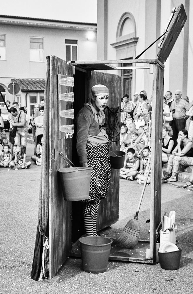 Hai colto nel segno. Lo spettacolo era al di là della struttura di legno. Il clown ritratto si trovava dietro le 'quinte' e con la sua mimica eccezionale deliziava solo i più attenti...  |