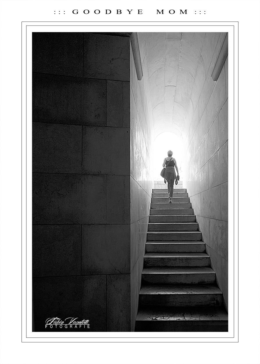 La luce verso Lei cui si dirige, in realtà è quella che lascia per sempre dentro di te. ed è un dono prezioso. La nostra vita si regge in realtà sulle luci che ci hanno attraversato al vita. Una foto che trovo pregevole nella resa, nell'impronta compositivo, nei toni, al di sopra della grande emozione che che ti ha portato al post, e che fai sorgere dentro di noi.